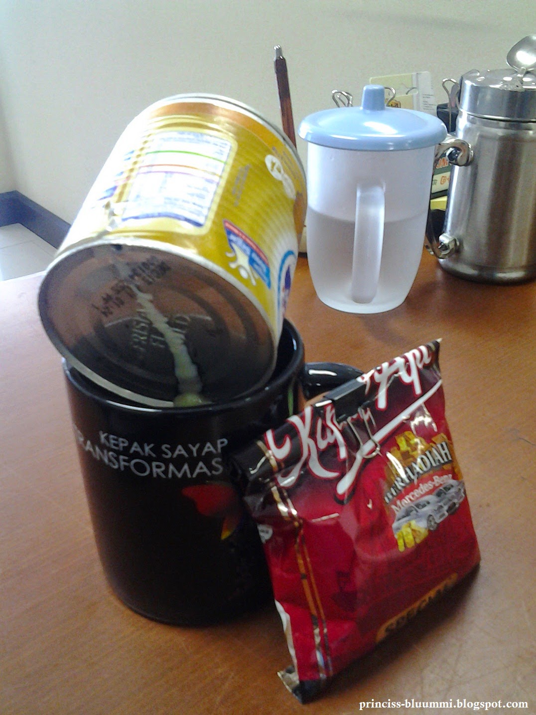Ah iya tentang susu setetes demi setetes itu, gini ceritanya, kan di kantor ada susu kental manis kalengan kecil yg biasa itu, yg biasanya dibolongin samping kanan kiri buat tempat keluar susunya, nah masalahnya di situ tuh. Jadi lubang buat ngeluarin susunya itu kecil banget, mana ditambah dimasukin kulkas pula, semi frozen gitu, lengkaplah sudah penderitaan gue.